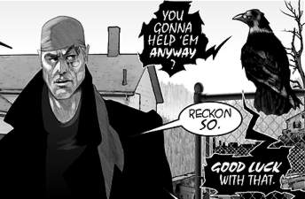 My own contribution, a short comics story called "Harkinton," is a tale of the aftermath of the apocalypse. Fans of the RailWalker At Rites series, or of Keys should be aware that this is not a tale of happy pagans dancing in the woods, nor of serious self-reflection... 2012: Final Prayer is a horror comic anthology, after all, so the story is a bit grim and violent. Brick doesn't appear as a character (though he is referenced), but there's another RailWalker involved... What's that you say? Another RailWalker? See the section below on Wolf for more on that... |